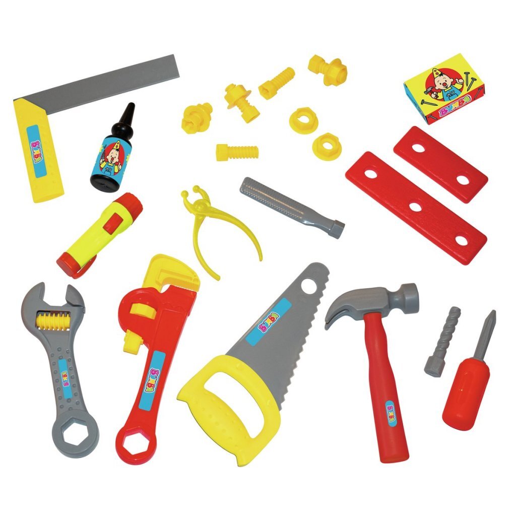Bumba gereedschapskoffer De stevige koffer bevat maar liefst 25 verschillende onderdelen, zoals een speelgoedhamer, schroevendraaiers, moeren, bouten en nog veel meer. Alles is speciaal ontworpen voor kleine handjes, veilig in gebruik en perfect om de fantasie te prikkelen. Kleur: rood/geel. Geschikt voor kinderen vanaf 3 jaar.