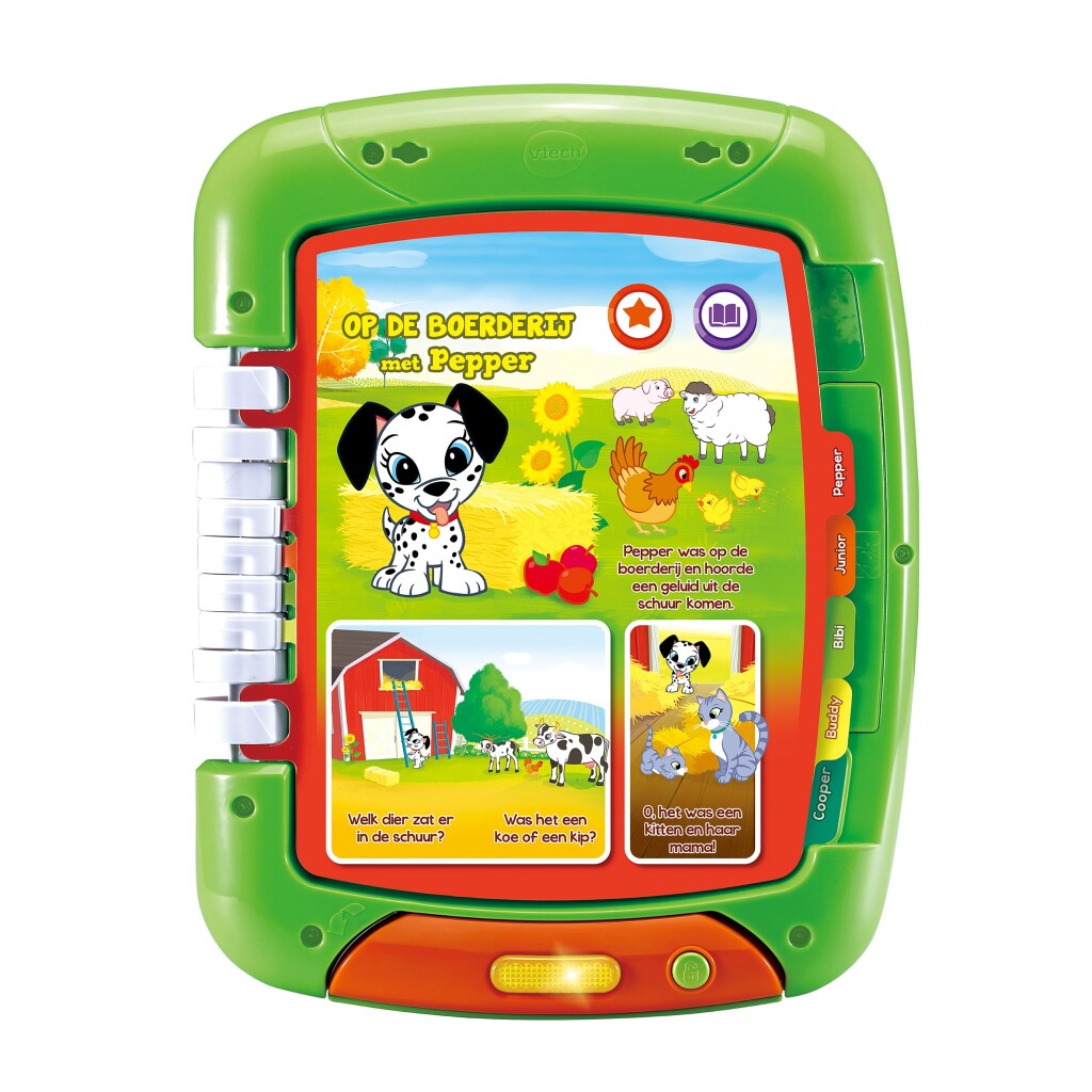 Lezen en leren met deze VTech Lees en Leer 2in1 tablet! Bevat 6 dubbelzijdige bladzijden met verhalen en activiteiten. Draai de tablet om, om te wisselen tussen de speelstand 'Activiteiten' en 'Verhaaltjes'. Luister tijdens de speelstand 'Verhaaltjes' naar 6 avontuurlijke verhalen over de puppy's of speel een uitdagend zoekspelletje. Speel leuke, leerzame spellen op 2 moeilijkheidsniveaus en maak kennis met emoties, kleuren, vormen, dieren en nog veel meer!