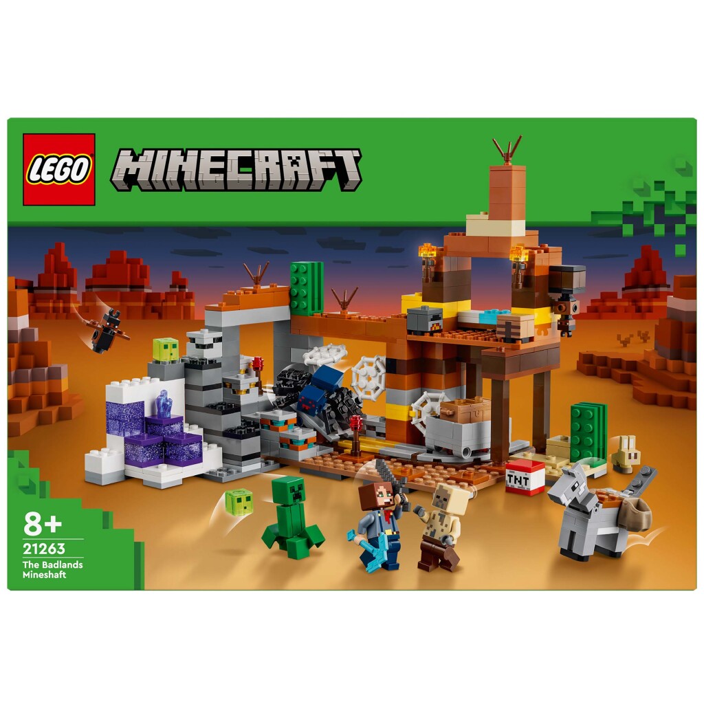 De woestenijmijnschacht (21263) is een praktische gamingset met mijnbouwthema voor Minecraft spelers. Dit veelzijdige bouwspeelgoed voor kinderen bevat populaire Minecraft mobs en is een geweldig cadeau voor jongens en meisjes die dol zijn op avontuurlijk Minecraft speelgoed. Kinderen gaan met de woestenijverkenner naar een verlaten mijn in het woestenijbioom, waar ze TNT tussen de stenen plaatsen en een explosiefunctie gebruiken om koper, goud, redstone en amethistkristallen te onthullen. Ze laden een mijnkar vol en rijden over de rails naar de uitgang van de mijn. Van daaruit reizen ze per ezel (compleet met grote zadeltassen) naar de basis van de verkenner met een bed en craftingbenodigdheden. Vijandige mobs die onderweg moeten worden verslagen zijn een Minecraft grottenspin, Creeper?, mummie en 2 slijmkubussen. Voor nog meer digitaal plezier kunnen bouwers inzoomen, modellen in 3D draaien en hun voortgang volgen in de leuke, intu?tieve LEGO Builder app. 538-delig. Geschikt vanaf 8 jaar.
