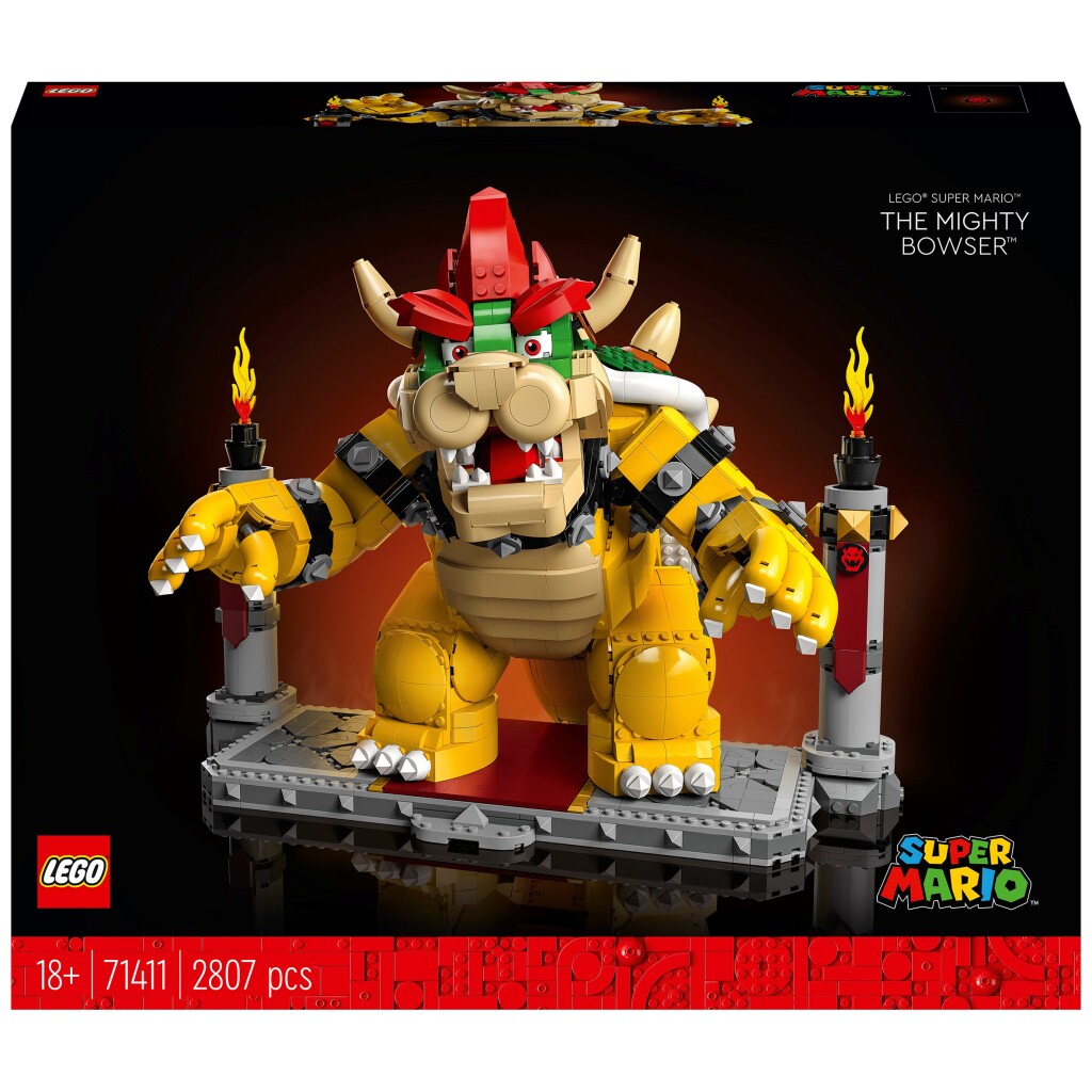 Bouw Lego Super Mario 71411 De Machtiger Bowser, speel ermee en geef hem een mooi plekje. Deze bouwbare figuur bevat Lego elementen die de stekels van koning Koopa vormen, plus leuke functies zoals een vuurbalschieter en een knop om het hoofd en de nek te bedienen. Ook zijn armen en vingers kunnen bewegen! Zet de machtige Bowser op het bouwbare gevechtsplatform met 2 torens die hij omver kan gooien, een verborgen POW-blok en een actietag. Combineer met een Lego Super Mario startset (71360, 71387 of 71403 apart verkrijgbaar) voor duels met Mario, Luigi of Peach. Dit is een geweldig cadeau voor Super Mario fans waaraan het hele gezin plezier zal beleven! Inclusief stapsgewijze instructies voor het uitdagende bouwproces. Welkom in jouw eigen wereld Ontdek ook de andere sets voor volwassenen in deze collectie. Er is altijd wel een inspirerend bouwproject dat bij jou past, waar je interesses ook liggen. 2807-delig. Vanaf 18 jaar.
