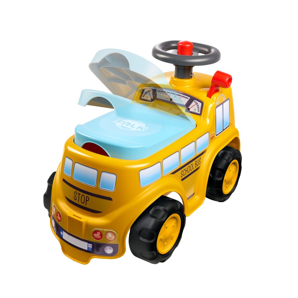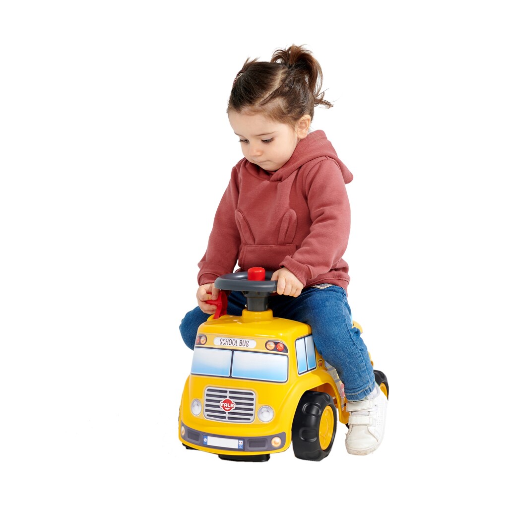 Op weg naar school gaan was nog nooit zo leuk met deze schoolbus, ontworpen voor kleine schoolkinderen vanaf 12 maanden. Met zijn schattige, ronde gezicht en felle kleuren wordt dit de favoriete manier van bewegen voor baby's. Supergemakkelijk te hanteren dankzij het directionele stuur met claxon, en met uitstekende stabiliteit kan uw kind zijn globale motoriek in alle veiligheid en stijl ontwikkelen! Onder de zitting zit een klein opbergdoosje verborgen. Ideaal om alle benodigdheden van het model schooljongen mee te nemen. En om zijn favoriete auto de zijne te maken, hebben we een aanpasbaar kenteken toegevoegd!