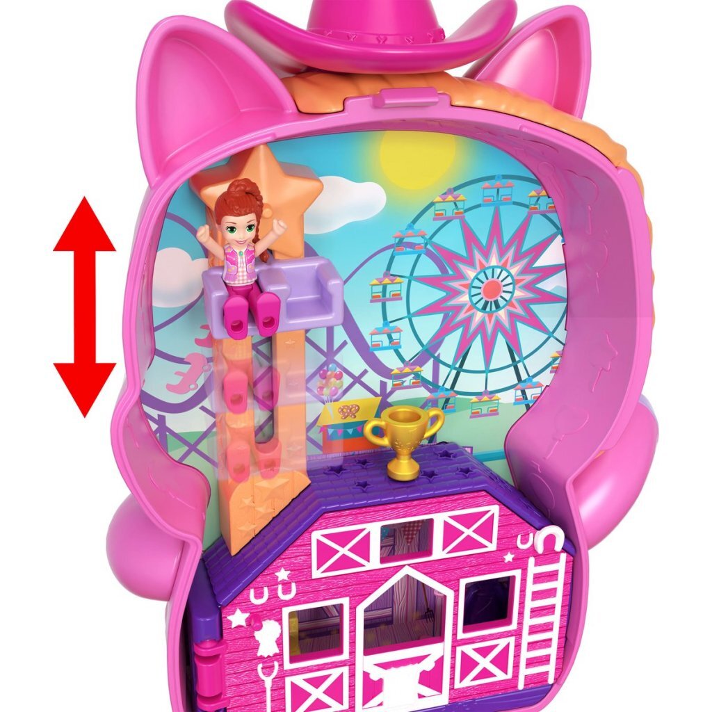Polly Pocket Pony Rodeo met6 speelruimtes, meer dan 10 accessoires en 1 minifiguur. Geschikt voor kinderen vanaf 4 jaar.