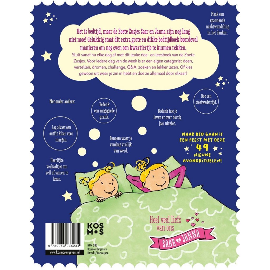 Boek De Zoete Zusjes Zijn Nog Lang Niet Moe Het is bedtijd, maar de Zoete Zusjes Saar en Janna zijn nog lang niet moe! Gelukkig staat dit extra grote en dikke bedtijdboek boordevol manieren om nog even een kwartiertje te kunnen rekken. Sluit vanaf nu elke dag af met de Zoetje Zusjes. Voor iedere dag van de week is er een eigen categorie: doen, vertellen, dromen, challenge, Q&A, zoeken en lekker lezen. Of kies gewoon uit waar je zin in hebt en doe ze allemaal door elkaar!