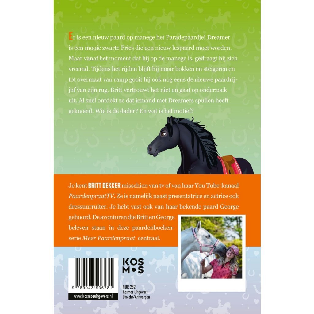In Paard op hol van Britt Dekker begint een spannend avontuur wanneer het nieuwe paard Dreamer niet te bedwingen lijkt. Het paard moet zijn plaats op de manege veroveren, maar tijdens de lessen blijft hij maar bokken en steigeren, wat voor chaos en ongelukken zorgt. Britt vertrouwt het niet en besluit op onderzoek uit te gaan. Al snel ontdekt ze dat er met Dreamers spullen is geknoeid. Maar wie is de schuldige en waarom?