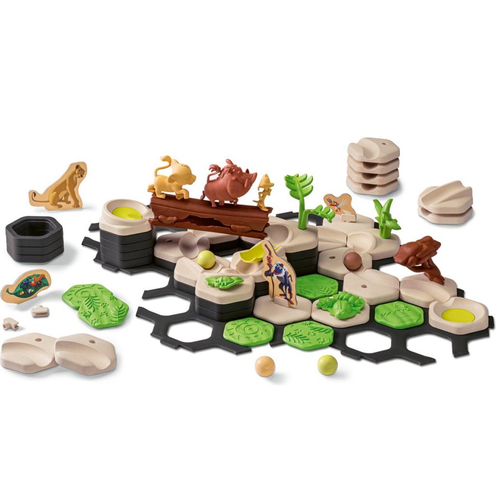 Met de GraviTrax Junior The Lion Kingkunnen kinderen vanaf 3 jaar hun eigen knikkerbaan bouwen, geïnspireerd door de magische wereld van Disney'sThe Lion King. Deze speciale set bevat 71 onderdelen waarmee jonge bouwers eindeloos kunnen experimenteren en spelen met gravitatietechnologie, terwijl ze geliefde personages en elementen uit de film ontdekken. Perfect voor het ontwikkelen van creatief denken, motorische vaardigheden en probleemoplossend vermogen, terwijl kinderen zich onderdompelen in de avontuurlijke wereld van Simba en zijn vrienden.