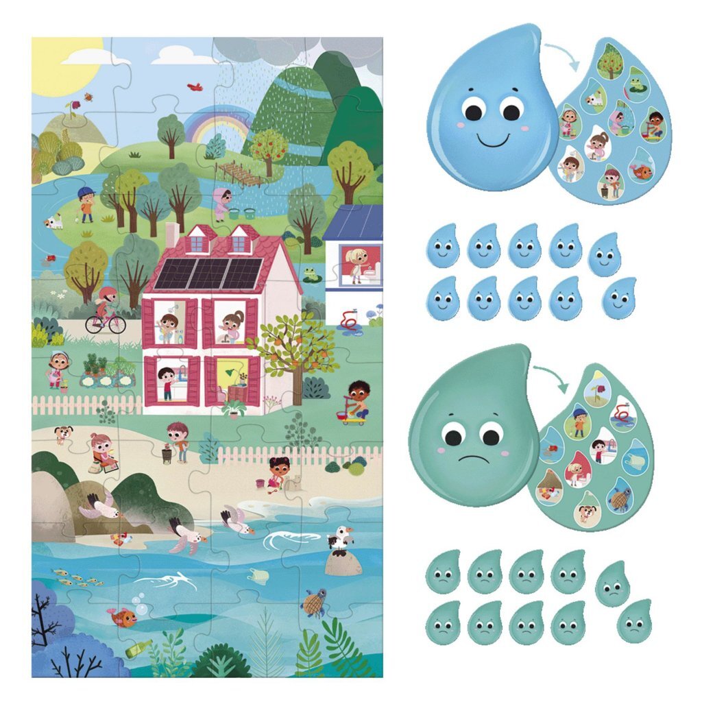 • Puzzel met 32 stukjes, 2 waterdruppels met positieve en negatieve gewoontes, 20 minidruppels en een digitale handleiding