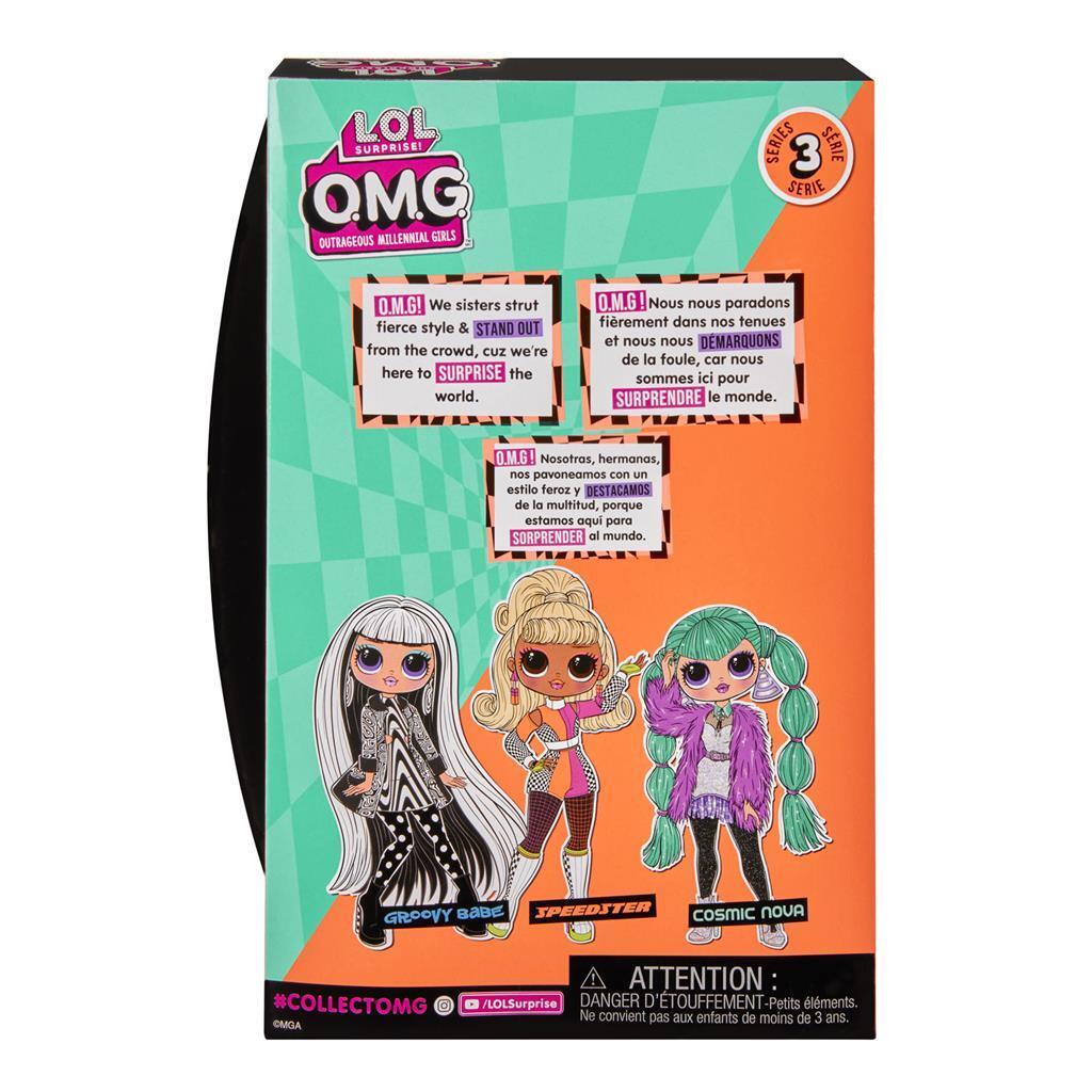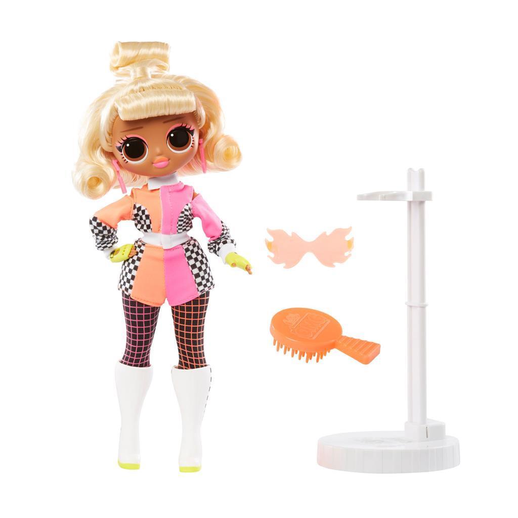 L.O.L. Surprise! O.M.G. Speedster Waarom zou je langzamer gaan als je ook harder kunt? Waarom zou je volgen als je ook kunt inhalen? Waarom zou je tweede worden als je ook eerste kunt zijn? Speedster. De originele, populaire L.O.L. Surprise O.M.G.-modepoppen zijn terug met allerlei verrassingen: hier is Speedster, de grote zus van het geliefde personage Drag Racer! Speedster is altijd klaar om de koppositie in te nemen en geniet van de spanning van snelheid. Deze opnieuw uitgebrachte Speedster-pop heeft het bekende mooie gezichtje en gestylede haar, een adembenemende, op een raceauto geïnspireerde outfit en beweegbare ledematen voor heel veel houdingen. Elke doos is inclusief een L.O.L. Surprise O.M.G.-modepop, een fenomenale outfit, accessoires met veel details, schoenen, een haarborstel en een poppenstandaard. Verzamel alle 3 de opnieuw uitgebrachte L.O.L. Surprise O.M.G.-poppen: Cosmic Nova, Groovy Babe en Speedster.