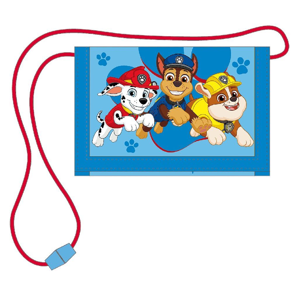 Paw Patrol portemonnee, borstzak formaat, van polyester met klittenband- en veiligheidssluiting, vakje voor de bankbiljetten, vak met rits voor kleingeld aan de achterkant, 2 extra steekvakken en nog een steekvak met kijkvenster aan de binnenkant. Kleur: blauw/rood.