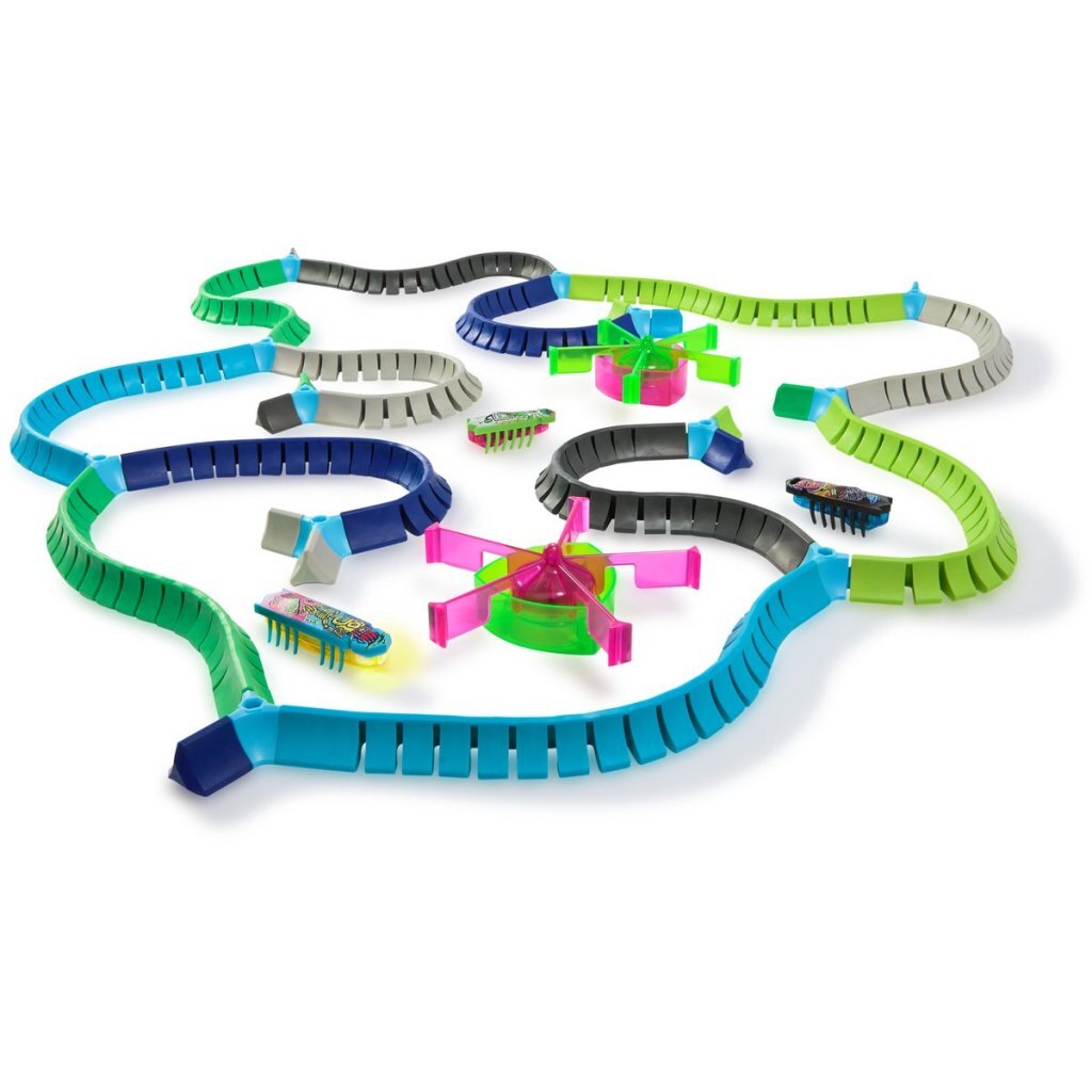 HexBots Nano Land speelset Het bestaat uit twee Nano Bots, een Nano Flash bot (groter dan de Nano Bots en twee keer zo snel, met LED-verlichting), superflexibel Kunststof bendes en obstakels voor urenlang, gevarieerd speelplezier. Elke habitat kan moeiteloos met andere spelsets worden gecombineerd. Geschikt voor kinderen vanaf 3 jaar.