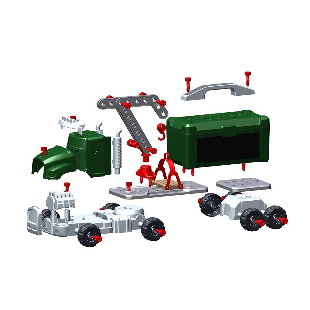 StoereBosch gereedschaps truckmet Ixolino 2 en andere tools vanTheo Klein.Talloze op- en afbouwmogelijkheden van truck tot zware transporter zijn met de Bosch schroef truck 1:24 te monteren en te demonteren. De gereedschapskist kan worden verwijderd. Aanhangwagen, kraan en vorkheftruck met pallet zijn in de set inbegrepen.