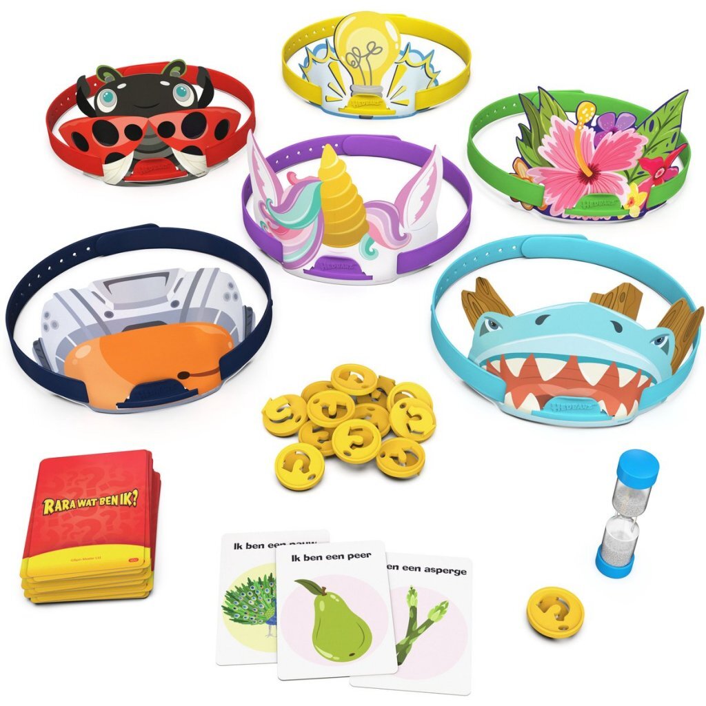 Spin Master Rara Wat Ben Ik Dit Hedbanz-spel bevat 6 nieuwe Hedbanz: pilotenbril, eenhoorn, haai, lieveheersbeestje, gloeilamp en bloemen, plus 69 gloednieuwe kaartillustraties, zoals 'Ik ben een brownie' en 'Ik ben een pauw'. Kies je favoriete hoofdband en pak een plaatjeskaart zonder naar het plaatje te kijken. Stel creatieve ja/nee-vragen om je kaart te raden in de categorieën dieren, voorwerpen en voedsel. Verzamel als eerste 3 scorebadges en win.