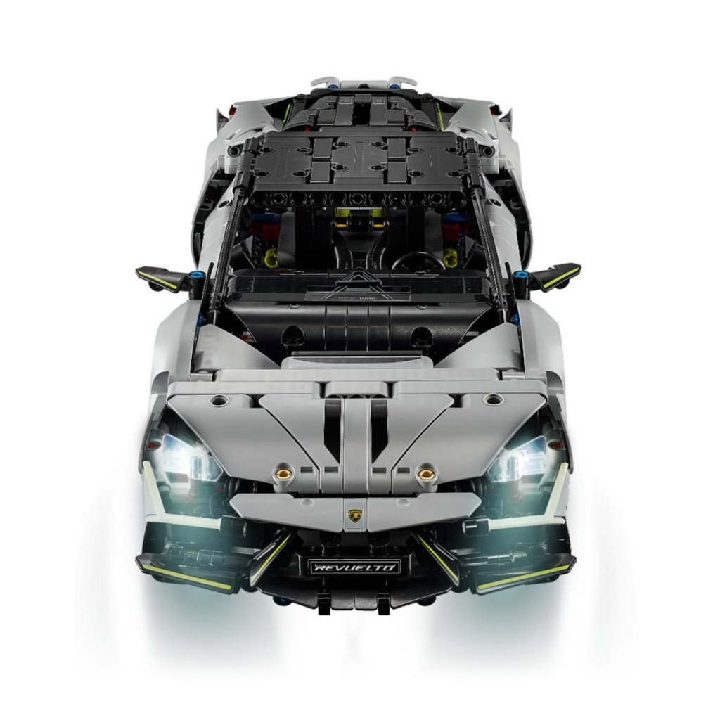 Lego Technic 42214 Lamborghini Revuelto Supersportwagen Dit model heeft functies die zijn geïnspireerd op de echte auto en is voorzien van een motorkap en coole glow-in-the-dark details op de koplampen. Lamborghini fans zullen hem geweldig vinden! Na het bouwen kunnen kinderen de CONTROL+ app gebruiken om de speelgoed auto te besturen, de koplampen te bedienen en live feedback te krijgen in de app terwijl ze hun rijvaardigheden perfectioneren. Deze speelgoed auto die op afstand te bedienen is, is geweldige kinderkamer decoratie na het bouwen. Deze sportwagen set is een geweldig cadeau voor jongens en meisjes die van op afstand bestuurbare auto's houden. De modelauto kan worden gemaakt met behulp van de Builder app, waarmee bouwers kunnen inzoomen, modellen in 3D kunnen draaien en hun voortgang kunnen bijhouden. De realistische bewegingen en mechanismen van Technic sets laten jonge bouwers kennismaken met de wereld van techniek. Geschikt voor kinderen vanaf 10 jaar.