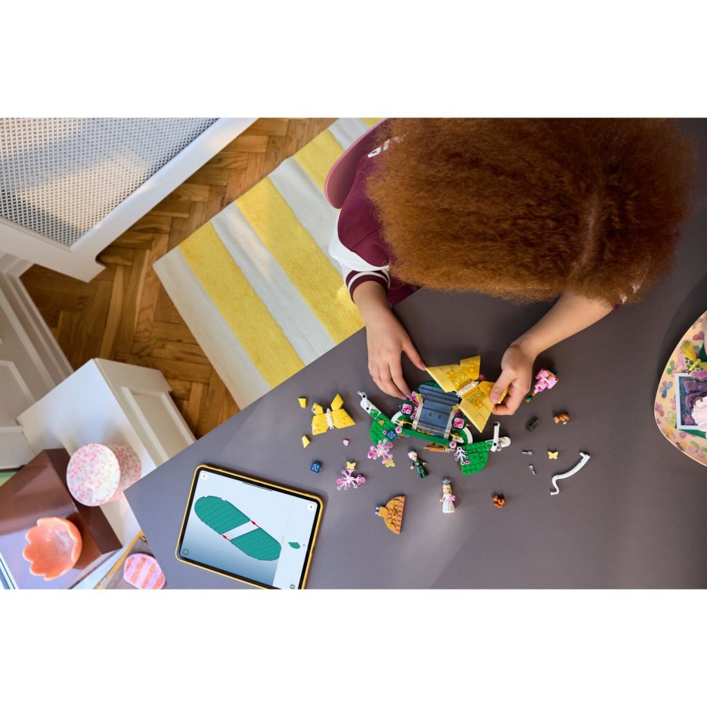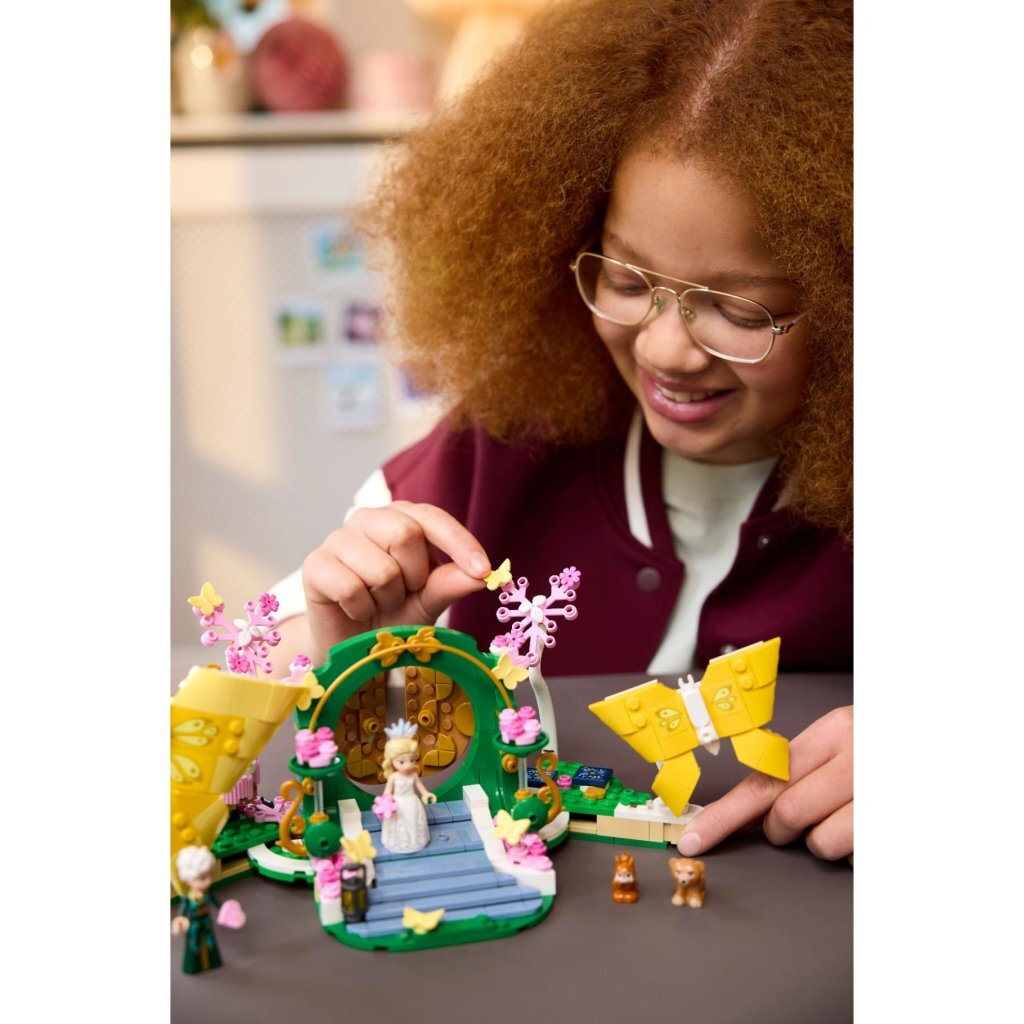 Lego Wicked 75688 Glinda's Trouwdag Fans van Wicked kunnen deze prachtige set bouwen en de dramatische scène uit Wicked: For Good naspelen waarin Glinda zich klaarmaakt om met Fiyero te trouwen. Kinderen duwen de grote speelgoedvlinders uit elkaar om de trouwscène te onthullen. Dit cadeau zit boordevol herkenbare details uit de film, waaronder de bruidstaart, een hartvormige uitnodiging en Glinda's boeket van Fiyero. Glinda draagt de jurk en tiara uit de film en heeft verwisselbare gezichten om na te spelen hoe de dag van haar dromen in een nachtmerrie verandert wanneer de meegeleverde dierenfiguren door de scène razen. Na het spelen kunnen kinderen het Wicked cadeau sluiten door de vlinders naar elkaar toe te duwen en deze opvallende set in hun kamer neerzetten. Dit bouwspeelgoed kan worden gecombineerd met andere Lego Wicked sets, zodat de avonturen uit de films nooit eindigen. De set bevat 476 onderdelen. Geschikt voor kinderen vanaf 8 jaar.
