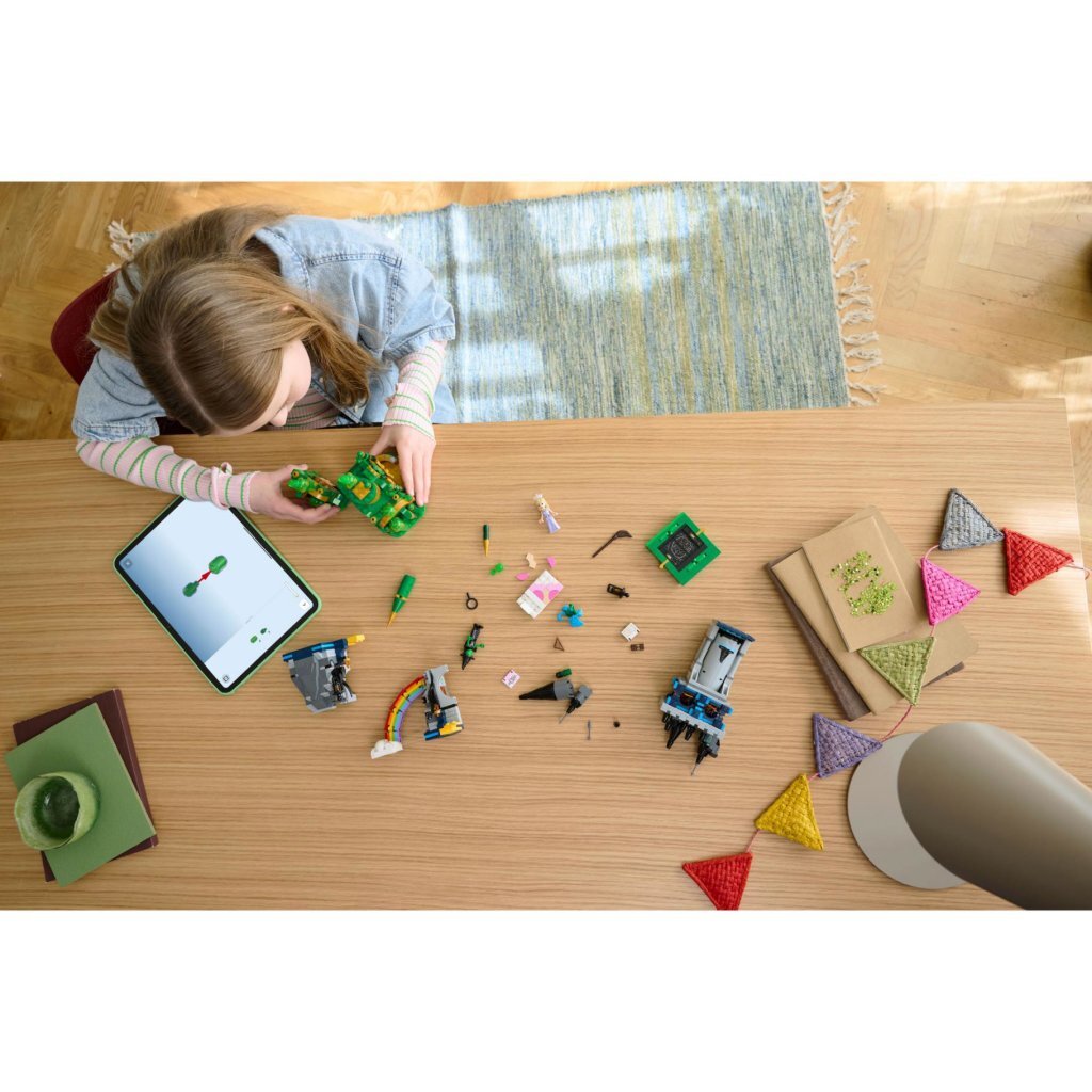 Meisjes, jongens en fans van de films kunnen het emotionele einde van Wicked: For Good naspelen met Glinda in de Emerald City en met Elphaba in Kiamo Ko kasteel. Deze set is een uniek cadeau. Naast de Glinda en Elphaba minipoppetjes is dit het eerste Lego Wicked speelgoed met een figuur van een vliegende aap. Kinderen verkennen de 2 gebouwen met de personages en ontdekken alle verborgen details. Ze kunnen relaxen in de slaapkamer van Emerald City of de verborgen kaart van Oz bestuderen. In het Kiamo Ko kasteel lezen ze de Grimmerie of helpen ze Elphaba te verdwijnen in de geheime ruimte om haar lot te volgen voorbij de Lego regenboog! Wicked sets bieden fans urenlang speelplezier waarbij ze scènes uit de films naspelen of hun eigen verhalen verzinnen. Het bouwen is net zo leuk als het spelen met deze 2 displaymodellen. De set bevat 860 onderdelen. Geschikt voor kinderen vanaf 9 jaar.