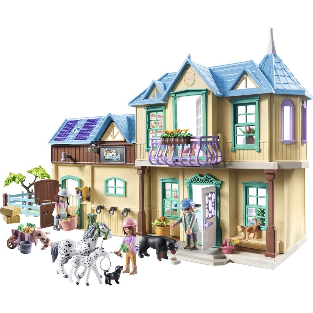 Playmobil 71351 Horses of Waterfall Ranch De set bevat een speelhuis en een stal, compleet met 3 speelfiguren, 2 paarden en 4 boerderijdieren. Ontdek het dagelijkse leven op de ranch terwijl je de dieren voedert, de paarden verzorgt en rondrijdt op de tractor. Beleef spannende avonturen met de figuren en paarden op de prachtige ranchomgeving. Met maar liefst 263 onderdelen biedt deze speelset eindeloze mogelijkheden voor creatief rollenspel. Laat je fantasie de vrije loop en ontdek de magie van het boerenleven op de Horses Waterfall Ranch. Een geweldige toevoeging aan de speelcollectie van elk kind dat van dieren en avontuur houdt! Geschikt voor kinderen vanaf 5 jaar.