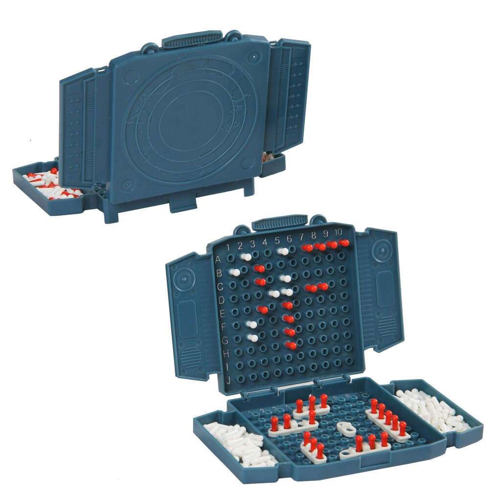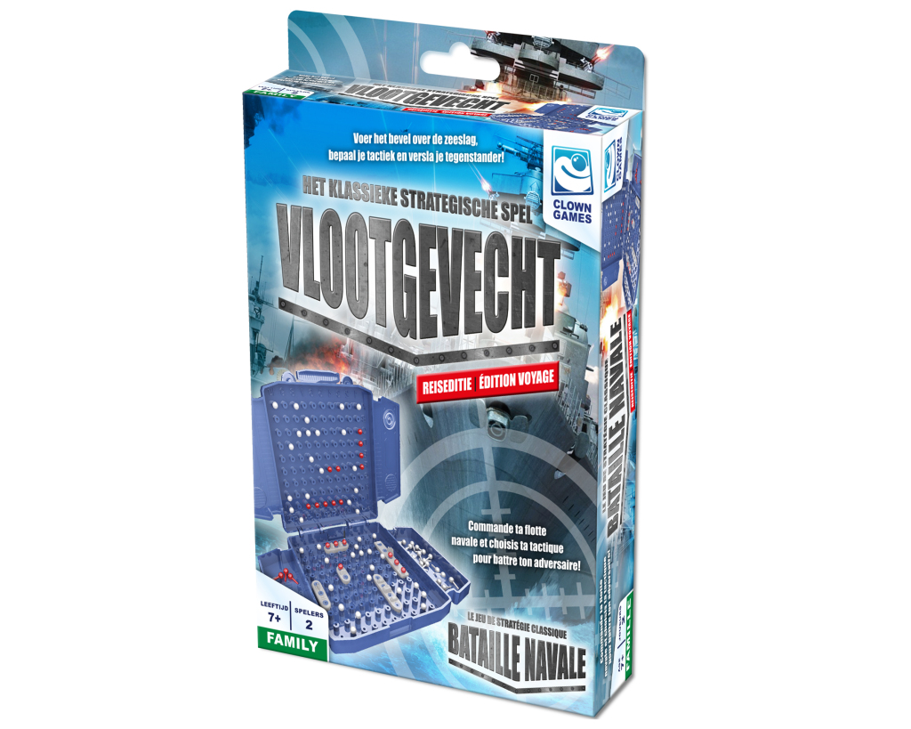 Zoek, schiet en win dit Clown Vlootgevecht spel in reiseditie! Kun jij de vloot van je tegenstander tot zinken brengen voordat al jouw schepen naar de haaien zijn? Beide spelers verdelen hun schepen op hun oceaanraster. Het verticale doelwitraster zorgt dat je elkaars schepen niet kunt zien! Blijf vuren en markeer je treffers met de rode pinnetjes. Gebruik de witte pinnetjes om bij te houden waar je miste, zodat je geen schoten verspilt. Als je logisch denkt en af en toe wat risico neemt, breng je de vijandelijke schepen tot zinken. Doe dit snel, want de vijand probeert hetzelfde met jouw vloot te doen! Plan je strategie en leid je troepen naar de overwinning!