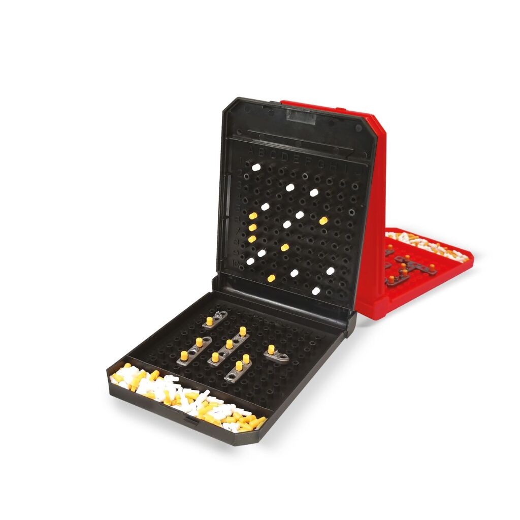 Zet je schepen neer en de strijd begint! Kies een combinatie van een cijfer en een nummer en spreek die uit. Heb je een schip van je tegenstander geraakt of schiet je mis? Probeer elkaar om de beurt te raken. De gene die als eerst alle schepen van de tegenstander heeft laten ‘zinken’, wint!