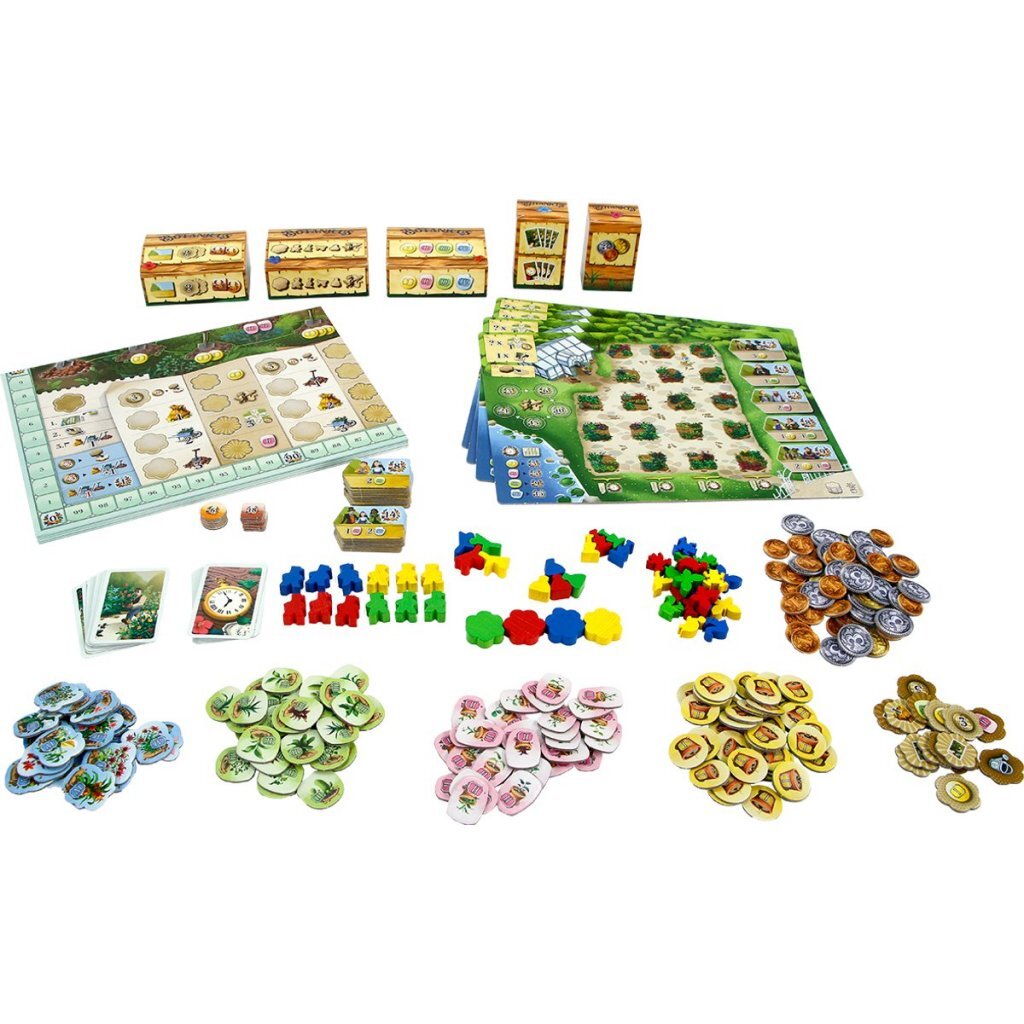 999 Games Botanicus Bordspel Nu je een prachtig stuk land tot je beschikking hebt is het aan jou om het te versieren met de prachtigste planten. In dit fleurige bordspel speel je tactisch je kaarten om allerlei verschillende bloemen in je tuin te planten. Wees slim in de acties die je uitvoert, want de volgorde waarin je aan de beurt bent is afhankelijk van jouw keuzes. De tuinman kan natuurlijk ook niet overal in je tuin tegelijk zijn, dus hoe zorg je ervoor dat alles op tijd water krijgt? Wanneer de kieskeurige kijklustigen langskomen om je tuin te beoordelen heb je maar beter je zaakjes op orde! Zijn ze tevreden, dan levert dat je punten op en de speler met de meeste punten aan het einde van het spel is de winnaar!