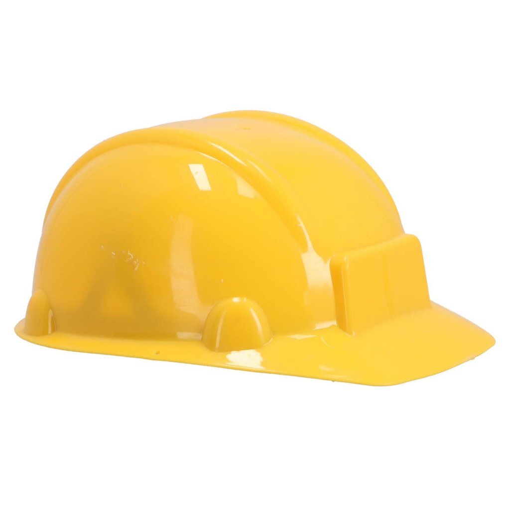 Speelgoed bouwhelm voor jonge bouwvakkers van geel kunststof. Geschikt voor kinderen vanaf 3 jaar.