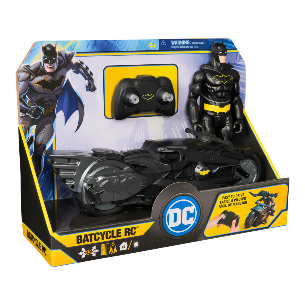 DC Batman RC Batcycle Rijd door de avontuurlijke wereld van DC met de Batman Stealth Batcycle met afstandsbediening. Deze spannende set bevat een volledig functionele afstandsbediening en een verwijderbare Batman-actiefiguur van 30 cm, klaar om op gedurfde missies te gaan. Met zijn 11 scharnierpunten is deze Batman-figuur klaar voor actie. Zijn armen draaien mee als je het speelgoedvoertuig bestuurt. De Batcycle is 25 cm lang en 10 cm breed en geschikt voor andere figuren van 30 cm, zodat kinderen worden aangemoedigd om hun eigen heldhaftige verhalen te verzinnen. Of je nu racet door de straten van Gotham met je favoriete superhelden van DC Comics of stilletjes rondsluipt voor een geheime missie, deze Batcycle-set is ontworpen voor fantasierijk spel. Combineer hem met een figuur van 30 cm uit je verzameling DC Comics-superhelden of bevestig hem aan je Ninja Strike Batman van 30 cm om de stealthmodus te activeren in ninjastijl.